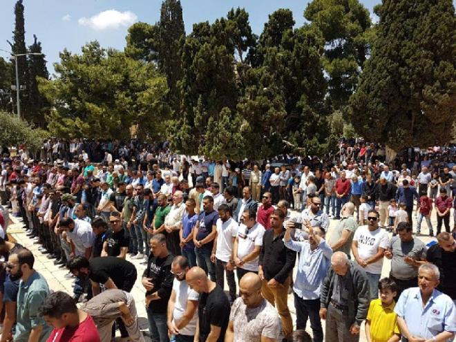 وفي المسجد الأقصى وقعت مواجهات بين المصلين وقوات الاحتلال المنتشرة في المكان حيث أطلقت قوات الاحتلال قنابل صوت تجاه المصلين بساحات المسجد الأقصى.