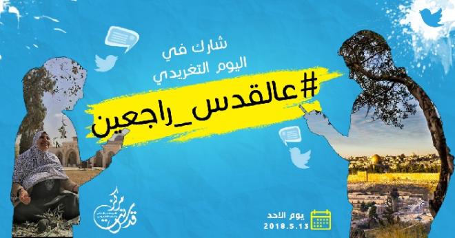 وأعلن المركز في بيان له، أن بداية التغريد ستكون يوم غد الأحد "13/5" في تمام الساعة 11 صباحاً بتوقيت مدينة القدس المحتلة.