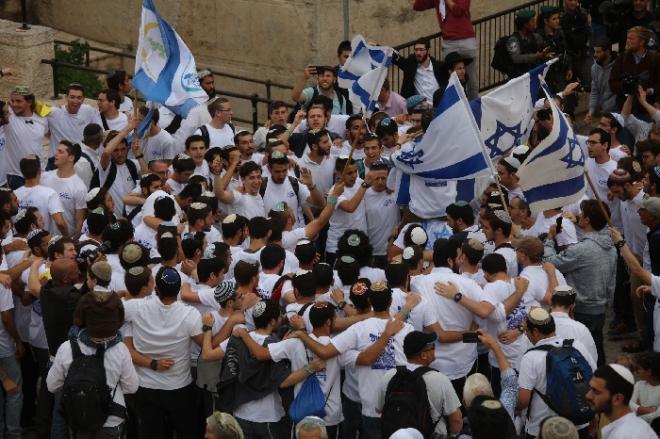 وينظم المستوطنون كل عام احتفالات صاخبة ومسيرة مركزية يطلقون عليها تسمية "رقصة الأعلام" في باحة باب العامود احتفاءً باحتلال ما تبقى من مدينة القدس وضم الشطر الغربي من المدينة وإعلانها عاصمة لدولة الاحتلال.