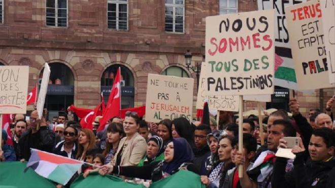 شهدت مدينتا ستراسبورغ وليون الفرنسيتين يوم الأحد، مظاهرتين احتجاجا على المجزرة الإسرائيلية في غزة، ودعما للقدس.