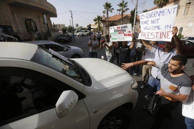 وقال الناشط مازن العزة ان "الرسالة اليوم هي انه لايوجد مكان للحكومة الاميركية في فلسطين هذه الحكومة التي تتساوق مع الاحتلال وتشاركه في جميع مشاريعه لن يكون لها مكان في فلسطين، نحن نحب الشعب الامريكي ولكن هذه الحكومة هي جزء من الاحتلال الاسرائيلي لارضنا وشعبنا."