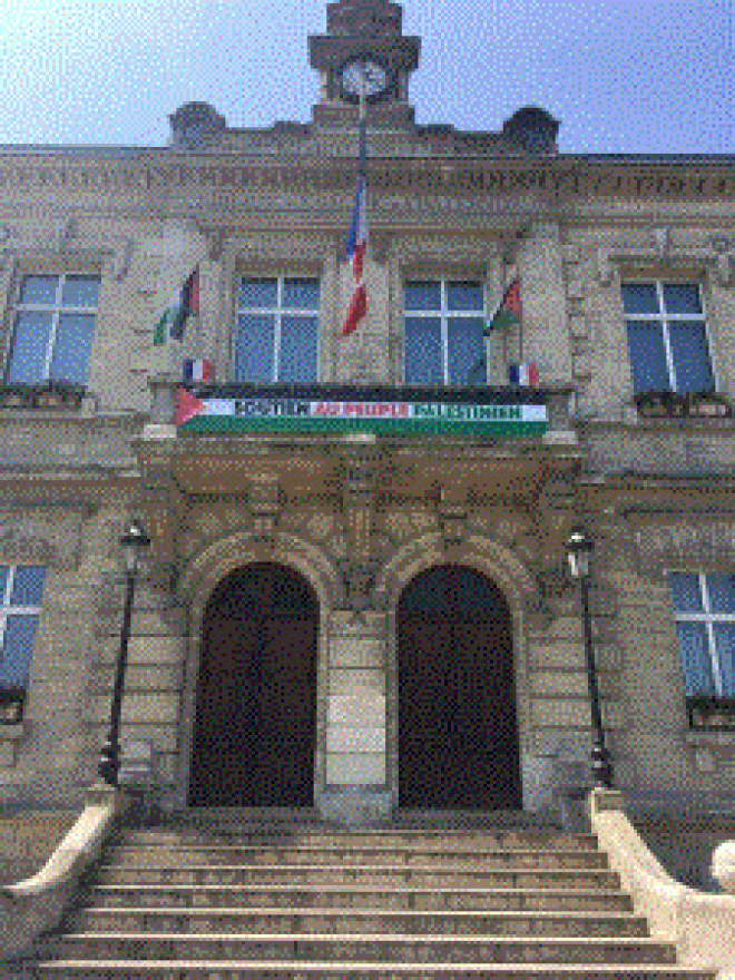 ورفرف علم فلسطين على مبنى بلدية مدينة فيلنوف سان جورج، تعبيراً عن تضامن المدينة مع الشعب الفلسطيني في نضاله لنيل حقوقه المشروعة، كما رفعت بلدية مدينة بورجونيه، العلم الفلسطيني في ساحتها الرئيسية، وكذلك رفعت مدينة كري الفرنسية علم فلسطين على واجهة مبنى البلدية الرئيسي مع لافتة وكتب عليها باللغة الفرنسية "دعماً للشعب الفلسطيني".