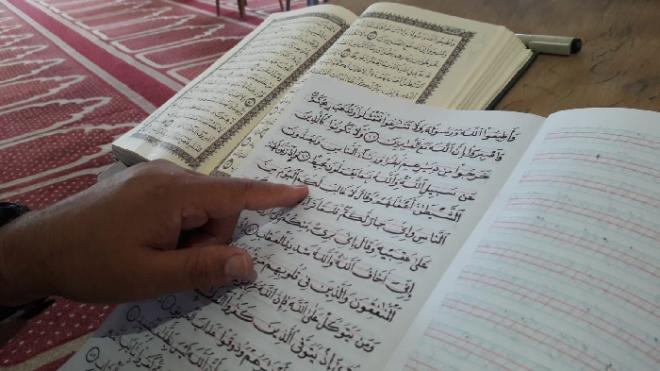 بعزيمة وإصرار، بدأ المواطن الفلسطيني محمد عمر "54 عامًا"، من سكان الحي السعودي غربي محافظة رفح، جنوبي قطاع غزة، منذ أشهر بنسخ القرآن الكريم كاملاً بالخط العثماني.