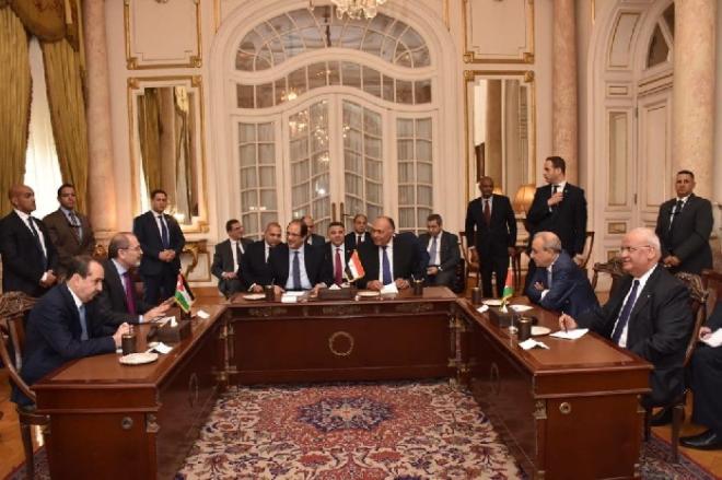 عقد في العاصمة المصرية القاهرة اليوم الخميس، اجتماع تشاوري ضم أمين سر اللجنة التنفيذية لمنظمة التحرير الفلسطينية صائب عريقات، ووزير خارجية مصر سامح شكري، ووزير خارجية الاردن أيمن الصفدي، وبمشاركة رؤساء اجهزة مخابرات الدول الثلاث، وذلك للتباحث بشأن آخر المستجدات على الساحة الفلسطينية.