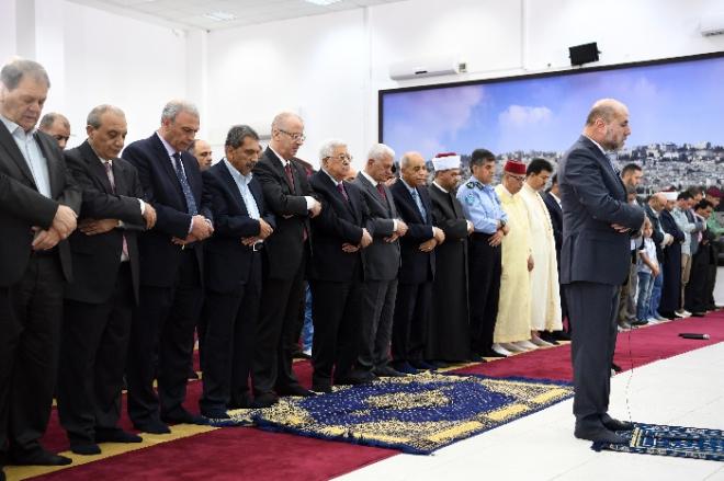 وأدى صلاة العيد إلى جانب أبو مازن، رئيس الوزراء رامي الحمد الله، وكبار المسؤولين المدنيين والعسكريين وحشد غفير من المواطنين.