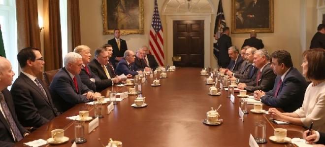 جاء ذلك خلال لقائه الرئيس الأمريكي دونالد ترامب، مساء الإثنين، في البيت الأبيض، ضمن زيارة رسمية لواشنطن بدأها العاهل الأردني، الخميس الماضي، ولم يُعلن عن مدتها.