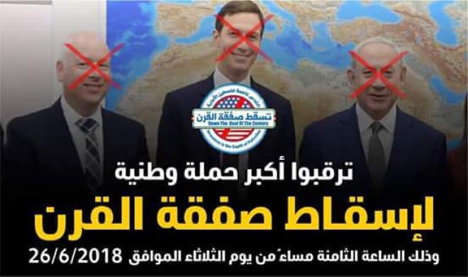 وقالت الحملة الوطنية لإسقاط صفقة القرن في بيان لها:" إنه استشعاراً بالمخاطر المحدقة بالمشروع الوطني الفلسطيني برمته، وما تقوم به الولايات المتحدة الأمريكية وحلفاؤها من محاولة لفرض رؤية دولة الاحتلال، وإجهاض حلم الدولة الفلسطينية والاستقلال الوطني، عبر تمرير ما يسمى بــ " بصفقة القرن "، فقد بادر الغيورون من أبناء شعبنا الفلسطيني بمشاركة ومباركة وطنية من شرائح وقطاعات عديدة من " الشباب، والطلاب، والمرأة، والأكاديميين، والمثقفين، وكتاب الرأي، والسياسيين، ورجال الدين، والإصلاح، والعشائر، والقطاع الخاص"، لمناقشة هذه المخاطر وسبل التصدي لها ومجابهتها، عبر إطلاق الحملة الوطنية لإسقاط صفقة القرن، والتي تهدف إلى توضيح مخاطر هذه الصفقة سيئة السيطـ، وكيف يمكن لها ان تعمل على إجهاض المشروع الوطني، وطرح حلول بديلة تلتف على الحقوق الثابتة للشعب الفلسطيني، عبر حزمة من التسهيلات الإنسانية والإغراءات الاقتصادية.