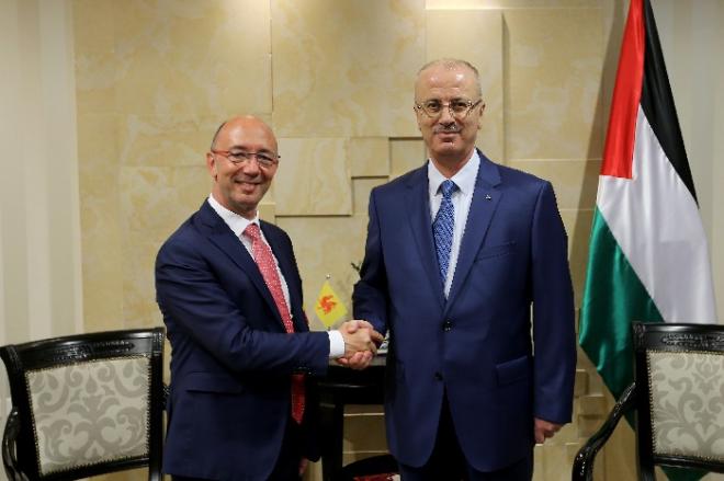 استقبل رئيس الوزراء الفلسطيني رامي الحمد الله، اليوم الثلاثاء في مكتبه برام الله، رئيس وزراء إقليم والونيا البلجيكي رودي ديموت، بحضور وزير الخارجية الفلسطيني رياض المالكي، حيث بحث معه آخر التطورات السياسية، وتعزيز التعاون المشترك ما بين البلدين.