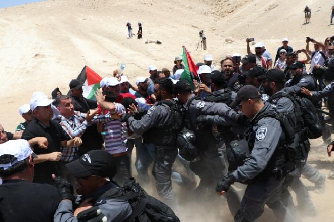 واعتدت قوات الاحتلال بالضرب على عشرات المواطنين والنسطاء الفلسطينيين الذين تصدوا للآليات العسكرية الإسرائيلية التي داهمت التجمع السكني البدوي تمهيداً لهدمه.