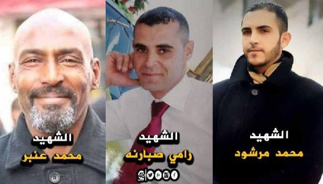 سلمت سلطات الاحتلال الإسرائيلي، مساء الجمعة، جثامين الشهداء رامي وحيد صبارنة من بلدة بيت أمر بمحافظة الخليل، ومحمد مرشود من مخيم بلاطة شرق نابلس، ومحمد عنبر من مخيم طولكرم.