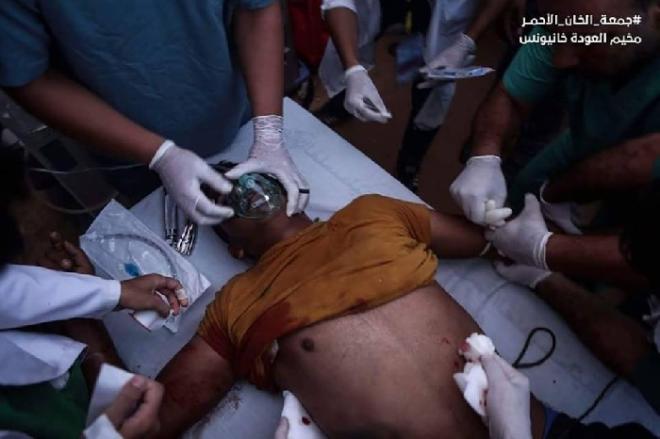 وأفاد المتحدث باسم وزارة الصحة الفلسطينية في القطاع أشرف القدرة باستشهاد الطفل عثمان رامي حلس (15 عامًا) برصاص الاحتلال شرق مدينة غزة، إضافة إلى إصابة 220 مواطنًا بالرصاص والاختناق.