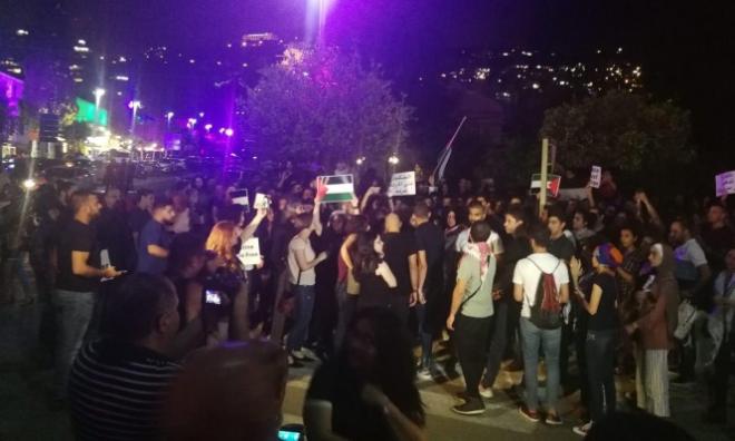 وتجمع المتظاهرون في ساحة الأسير في شارع أبو نواس، بدعوة من حراك حيفا، ورفع المشاركون الأعلام الفلسطينية ولافتات داعمة لاهالي قطاع غزة، كتبت على بعضها شعارات من قبيل؛ "لا عودة عن حق العودة" و"يا غزة لا تهتزي".حسب موقع عرب 48
