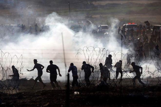 18:15:01 قوات الاحتلال تطلق النار بكثافة صوب المتظاهرين شرق البريج