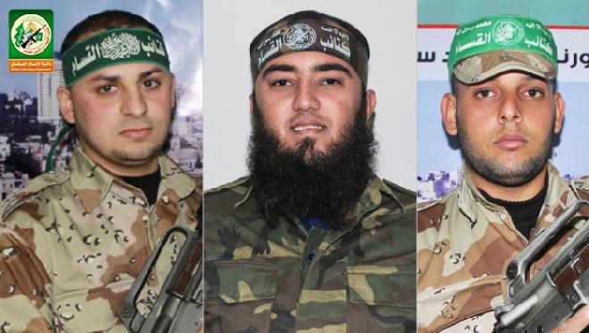 ونعت كتائب القسام الذراع العسكري لحركة حماس في بيان صدر عنها، تلقت "وكالة قدس نت للأنباء" نسخة عنه، الشهداء الثلاثة (محمد العرعير وأحمد البسوس وعبادة فروانة) من حي الشجاعية شرق غزة، مؤكدة بانهم قضوا إثر قصف اسرائيلي استهدف نقطة لقوة "حماة الثغور-  الضبط الميداني" شرق المدينة.