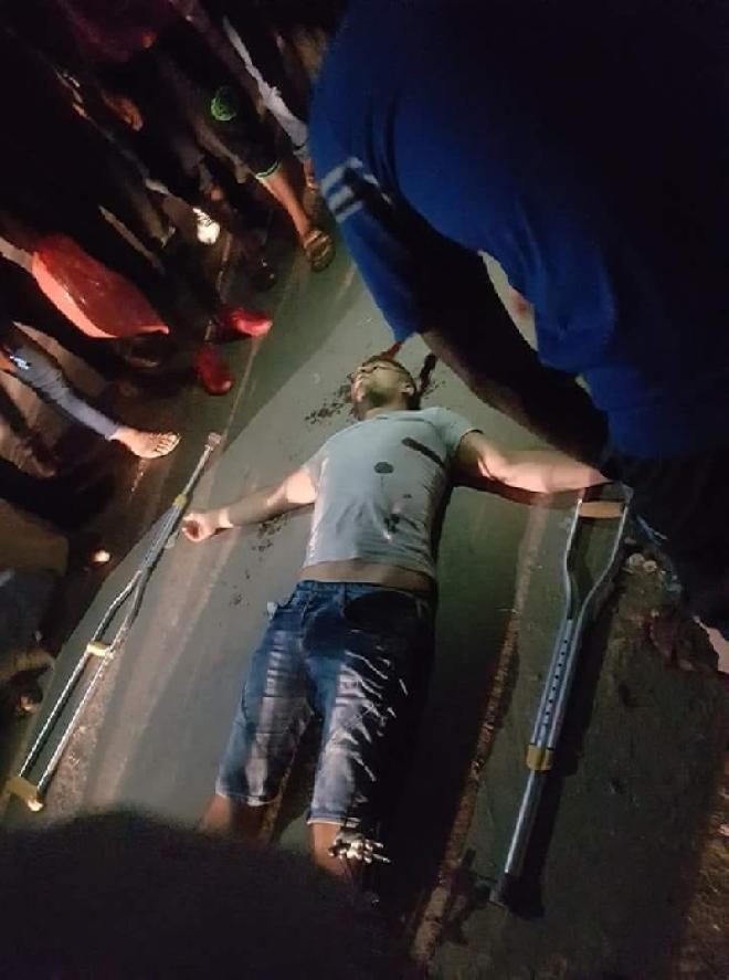 وتظهر صورة تناقلتها مواقع التواصل الاجتماعي الضحية بعد تعرضه لعملية اطلاق النار يستخدم عكازين على اثر اصابته بمسيرات العودة.