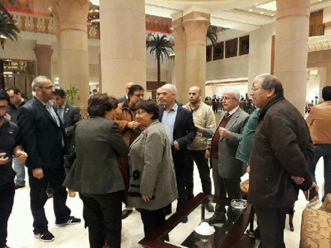 وأفاد مصدر في إدارة معبر رفح بان الوفد يضم 26 شخصية من ضمنهم : عن حماس خليل الحية وروحي مشتهى، و4 شخصيات حكومية منها.. وكيل وزارة المالية يوسف الكيالي، ومسؤول ديوان الموظفين العام السابق بغزة محمد الرقب، إضافة إلى مسؤولين آخرين"؛ وعن الجبهة الشعبية كايد الغول، وجميل مزهر، وورباح مهنا، وعن الجبهة الديمقراطية..صالح ناصر وأخرين.