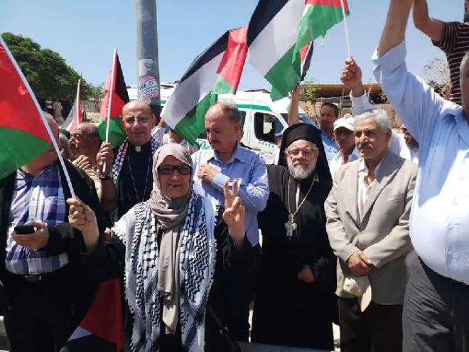 وعقب انتهاء الصلاة، نظم المواطنون مسيرة بمحاذاة الشارع الرئيسي للخان الأحمر، رفعوا خلالها العلم الفلسطيني، ورددوا الهتافات المنددة بالاحتلال وسياساته العنصرية ضد شعبنا، وكذلك ضد سياسات الإدارة الأميركية المنحازة والداعمة له.