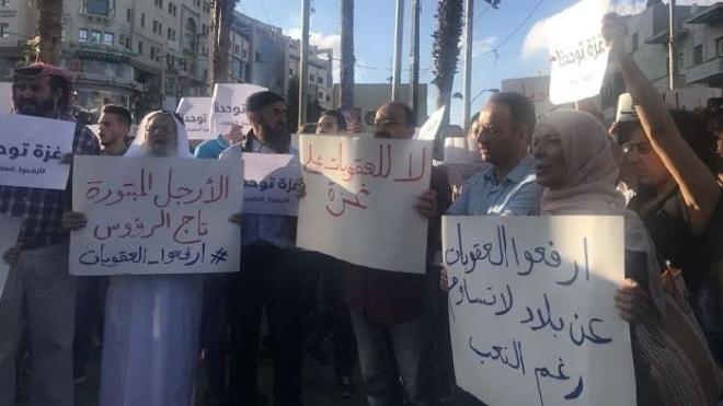 ونشر النشطاء شريط فيديو على موقع تويتر خلال وقفة للمطالبة برفع "العقوبات" عن غزة، وثق لحظة تمزيق لافتات تضامنية من طرف أشخاص قالوا إنهم عناصر أمن بلباس مدني، وحاولوا أيضا إخراج عدد من الفتيات خارج مقر منظمة التحرير برام الله.