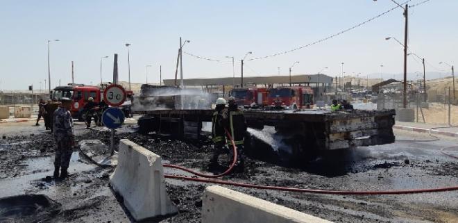 צוותי כיבוי ישראלים ירדנים ופלשתיינים פעלו יחד לכיבוי שריפה במשאית סמי טריילר, שהובילה קרטונים ועלתה באש בצד הירדני של מעבר אלנבי.