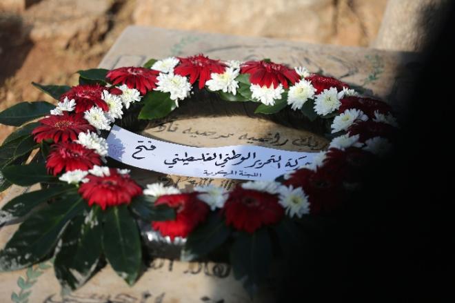كما وضع أعضاء من القيادة الفلسطينية، أكاليل من الزهور على أضرحة الشهداء في مقبرة الشهداء بمدينة البيرة.