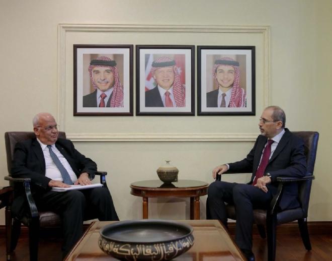 وحسب بيان صحفي صادر عن وزارة الخارجية الأردنية، فقد استقبل الصفدي عريقات، اليوم الأحد، لبحث سبل استمرار تنسيق المواقف والعمل المشترك لكسر الانسداد السياسي في الجهود السلمية، وإيجاد أفق يتيح التقدم نحو حل الصراع الفلسطيني الإسرائيلي على أساس حل الدولتين، الذي يضمن قيام الدولة الفلسطينية المستقلة على خطوط الرابع من يونيو / حزيران لعام ١٩٦٧ وعاصمتها القدس الشرقية سبيلا وحيدا لتحقيق السلام الشامل والدائم.