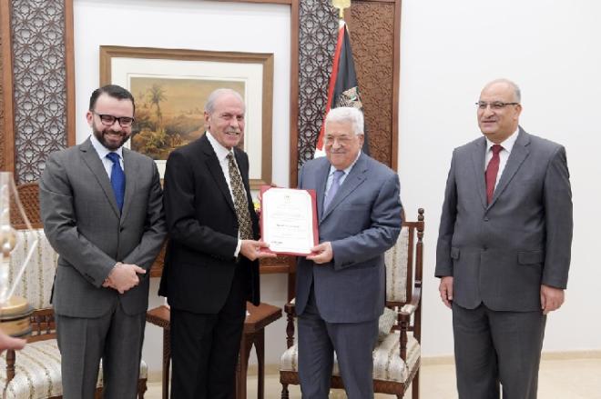 كرم الرئيس الفلسطيني محمود عباس (أبومازن)، اليوم الأحد، الفائزين بجائزة الدولة التقديرية في الآداب والفنون والعلوم الإنسانية للعام 2017.