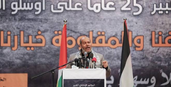 وأكد الحية في كلمة له خلال مشاركته في المؤتمر الوطني "الوحدة هدفنا والمقاومة خيارنا" في الذكرى الـ 25 لتوقيع اتفاق أوسلو، والذي عقد اليوم الخميس في مدينة غزة، أن "شعبنا بقواه الحية في المنافي والشتات يرفضون الاتفاق ويطالبون السلطة المتنفذة ومن تبقى من فريق أوسلو أن يعلنوا انتهاءه."