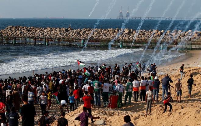 وأطلقت قوات البحرية الإسرائيلية النار وقنابل الغاز تجاه المواطنين الذين احتشدوا قبالة شاطئ البحر شمال غرب قطاع غزة بالتزامن مع إنطلاق المسيرة البحرية الثامنة من ميناء غزة باتجاه الحدود المائية مع الأراضي المحتلة عام 48، ما أسفر عن إصابة العشرات بالرصاص الحي وحالات اختناق.