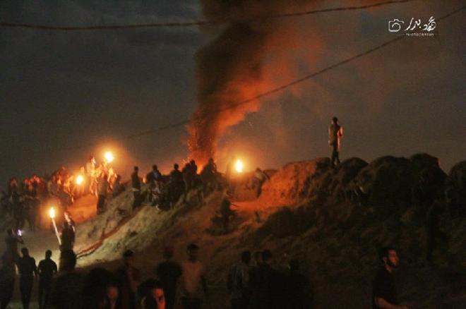 وتواصل مجموعات من الشبان والفتية الفلسطينيين تسمي نفسها "وحدات الإرباك الليلي"اشعال الاطارات المطاطية واطلاق اصوات صفارات الانذار والاغاني الوطنية والحماسية على طول السياج الفاصل شرق قطاع غزة لإرباك جنود الاحتلال،ضمن فعاليات مسيرات العودة الكبرى كسر الحصار.