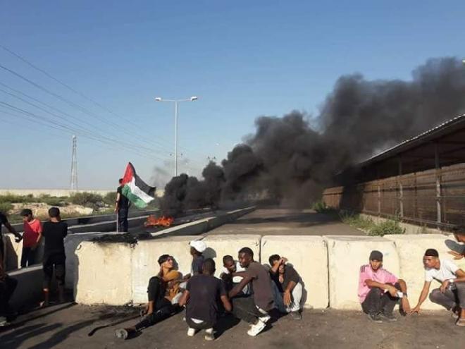 واقترب المشاركون من الجدار الاسمنتي في الجانب الاسرائيلي من المعبر، واشعلوا اطارات السيارات ورشقوا جنود الاحتلال بالحجارة.