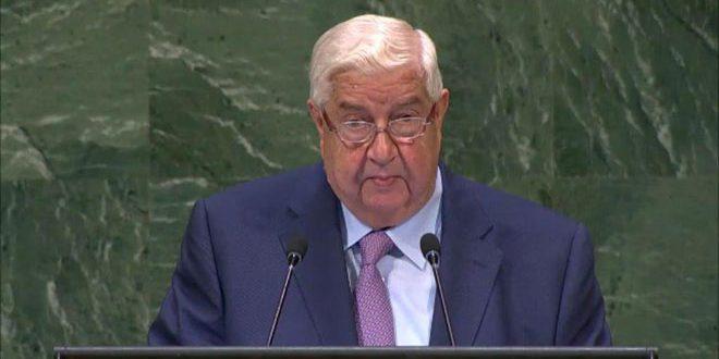 قال وليد المعلم  وزير الخارجية والمغتربين السوري إن "إسرائيل ما زالت تحتل جزءا غاليا من أرضنا في الجولان السوري وما زال شعبنا هناك يعاني من ممارساتها القمعية والعدوانية لا بل أن تلك الممارسات وصلت إلى حد دعم التنظيمات الإرهابية التي كانت موجودة في جنوب سورية إضافة إلى التدخل العسكري المباشر لحمايتها وشن اعتداءات متكررة على الأراضي السورية.."
