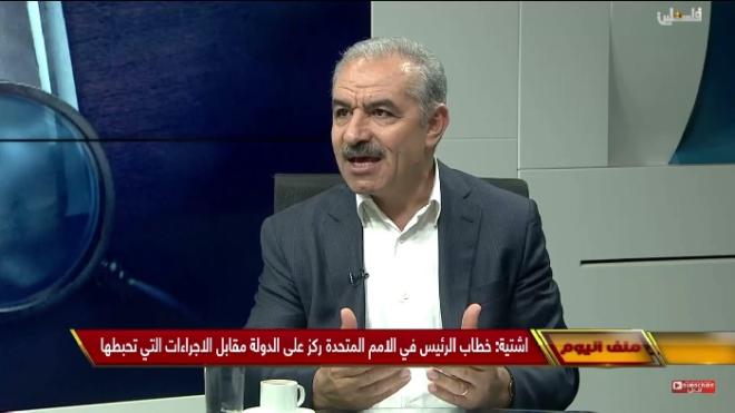 وقال اشتية ان"خطاب ابو مازن بالامم المتحدة وحد الجغرافيا الفلسطينية ووضع الامور في سياقٍ واضح، يتمثل في الحديث عن الدولة المستقلة في مواجهة الاجراءات المحبطة لها سواء بالاستيطان او غيرها".