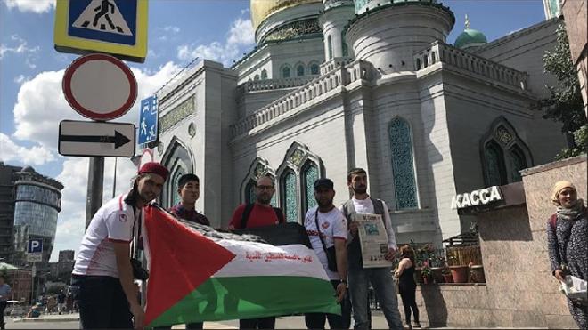 نظم متضامنون مع إضراب فلسطيني الداخل ضد قانون الدولة القومية الإسرائيلي، وقفة تضامنية أمام السفارة الفلسطينية في العاصمة الروسية موسكو.