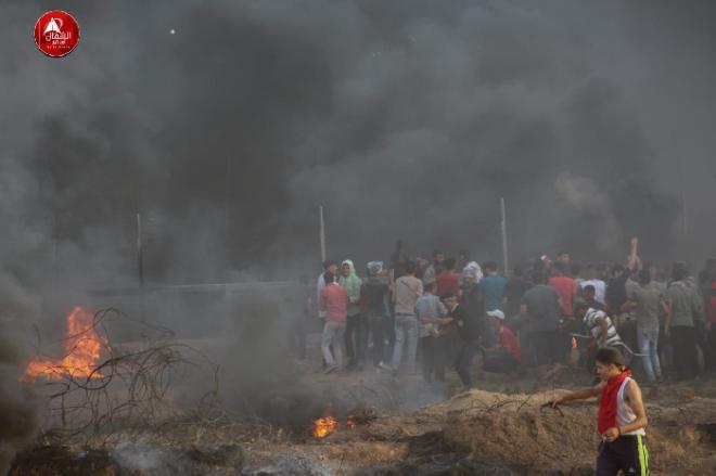 وقال ناطق باسم جيش الاحتلال الاسرائيلي " ان سلاح الجو نفذ غارتين شمال قطاع غزة ردا على إلقاء عدد من القنابل والعبوات الناسفة تجاه الجنود على طول حدود مع القطاع"، مشيرا الى ان ما يقرب من 20 الف متظاهر فلسطيني تظاهروا على طول حدود قطاع غزة اليوم