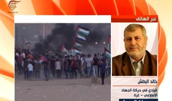 قال القيادي في حركة الجهاد الإسلامي خالد البطش إن فصائل المقاومة الفلسطينية لديها "مساران للرد على العدوان الاسرائيلي، وهما استمرار المسيرات وبندقية المقاومة لحماية المسيرات".