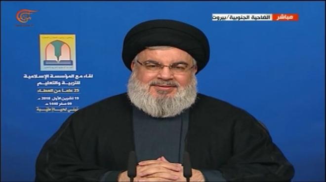 وقال نصر الله في خطاب متلفز خلال الاحتفال باليوبيل الفضي للمؤسسة الإسلامية للتربية والتعليم في بيروت أن "لا خيار أمام الفلسطينيين في غزة إلا الصمود والمواجهة والمقاومة".