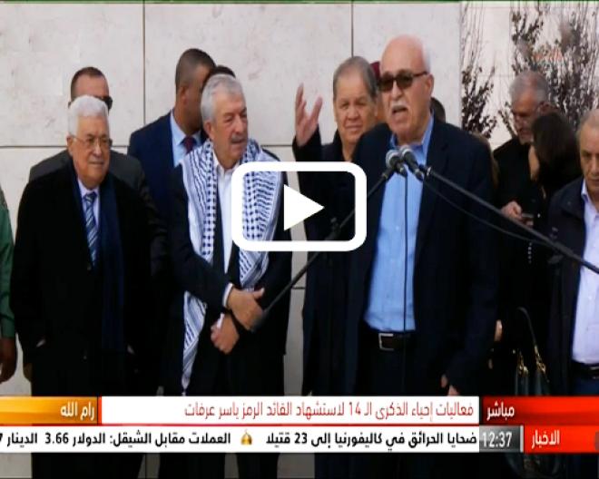 جاء ذلك في كلمة ألقها رأفت باسم اللجنة التنفيذية لمنظمة التحرير الفلسطينية في الذكرى الـ 14 لاستشهاد الرئيس الراحل ياسر عرفات، من امام الضريح بمقر الرئاسة الفلسطينية بمدينه رام الله.