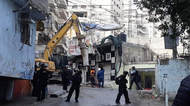 وشرعت جرافات وآليات الاحتلال الإسرائيل، بعملية هدم جماعية وواسعة لعدد من متاجر المواطنين في مخيم شعفاط، وسط القدس المحتلة.