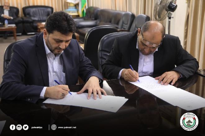 وقع سمير مطير رئيس مجلس إدارة شركة توزيع الكهرباء وحسن الصيفي وكيل وزارة الأوقاف والشؤون الدينية في مقر الوزارة الرئيس بمدينة غزة اليوم الأربعاء مذكرة تفاهم مشتركة لتركيب عدادات مسبقة الدفع في المساجد التابعة لوزارة الأوقاف.