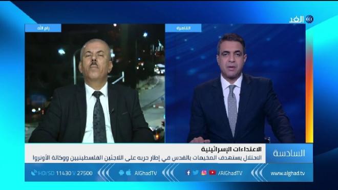 وأضاف عيسى، خلال لقائه على شاشة "الغد" الإخبارية، أنَّ إسرائيل تريد أنْ تفرض سيادتها على كل المَناطق المُحاذية في القدس وحول القدس لأنْ تقول إنَّ هذه المدينة هيَّ يَهودية هذا من جانب، والجانب الآخر هو شطب حق عودة اللاجئين الفلسطينيين وهذا ما صرحَ به الرئيس الأمريكي دونالد ترامب، أو الكونجرس الأمريكي عندما قالوا بإنه لم يبق من اللاجئين إلا 40 ألفًا، وهم يقصدون الذين أعمارهم كبيرة، وبالتالي لا يعترفون بأولادهم.