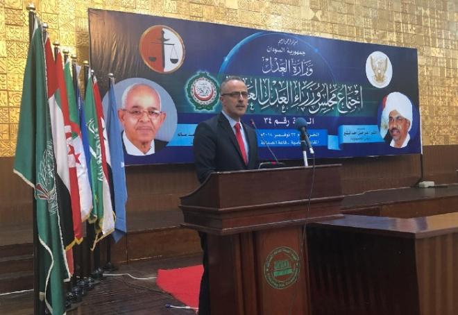 وتحدث الرئيس البشير بكلمته في افتتاح الدورة مرحبا بوزراء العدل العرب، ومؤكدا على أهمية التعاون العربي المشترك في مجال العدالة والقانون مؤكدا على ضرورة توحيد الجهود وتنسيق المواقف لتطوير مؤسسات العدالة فى المنطقة العربية، وأضاف "بأن التحديات التى تواجه العالم والمنطقة، المتمثلة فى الإرهاب والتطرف والإتجار بالبشر والمخدرات والجريمة المنظمة والعابرة للحدود، تستوجب التماهى مع اهتمام العالم، والعمل سويا لتعزيز المنظومة العدلية العربية، دون المساس بسيادة الدول."