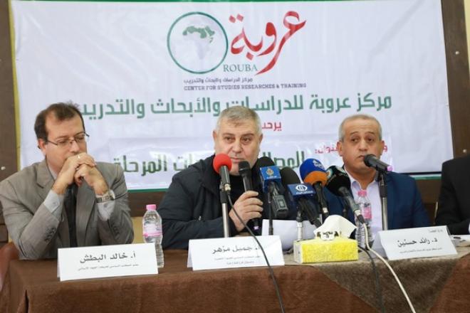 قال خالد البطش عضو المكتب السياسي لحركة الجهاد الإسلامي إن "مرحلة التحرر الوطني تحتاج إلى أدوات مختلفة، وإدراك المخاطر والتحديات التي تواجه القضية الفلسطينية من صفقة القرن وتسارع وتيرة التطبيع مع الاحتلال، والمشاريع المشبوهة التي تستهدفنا وتستهدف أمتنا العربية كمشروع قناة البحرين وقطار السلام، وسعي الإدارة الأمريكية وحلفائها إلى إصدار قرارات أممية لاعتبار المقاومة ارهاب"، مشيراً "أننا دخلنا مرحلة كسر عظم مع المجتمع الدولي وبحاجة لوحدة."