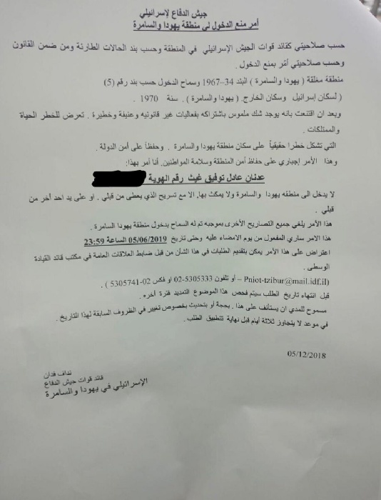 كما أبلغته سلطات الاحتلال بأنها ستسلمه قراراً ثانياً الأسبوع المقبل دون الإفصاح عن تفاصيله.
