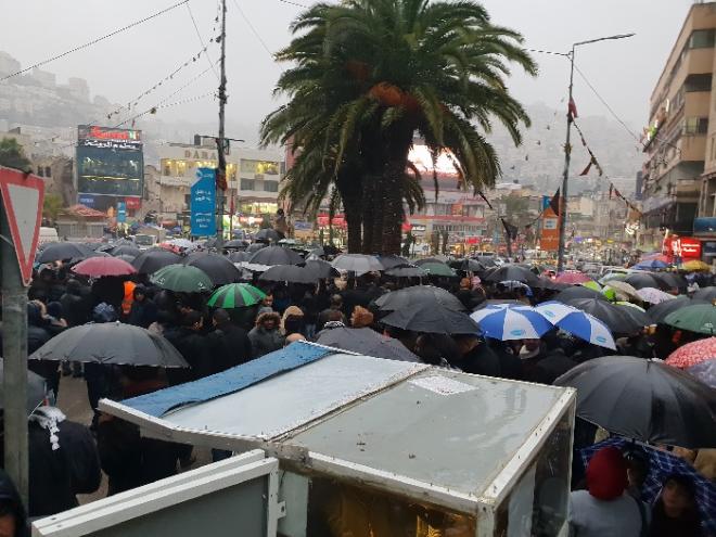 شارك الالاف من الفلسطينيين، اليوم السبت، في وقفة احتجاجية بمدينة نابلس شمال الضفة الغربية، للمطالبة بإسقاط قانون الضمان الإجتماعي.