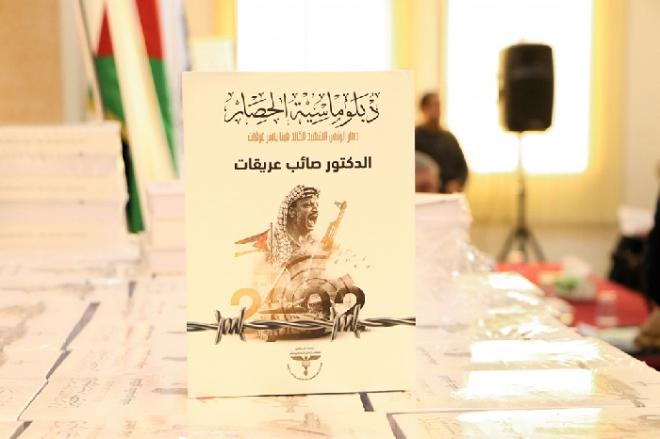 أعلن د. صائب عريقات أمين سر اللحنة التنفيذية لمنظمة التحرير الفلسطينية، عن اشهار كتابه الجديد بعنوان "دبلوماسية الحصار" /حصار الرئيس الشهيد الخالد فينا ياسر عرفات، فى حفل أقيم بجامعة الاستقلال في محافظة أريحا.