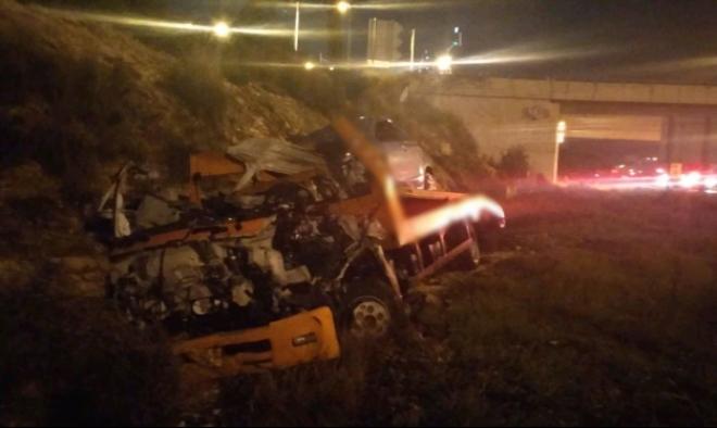 ووصلت طواقم الإسعاف إلى المكان، وأعلنت عن وفاة السائق الذي طار من الشاحنة جراء الانفجار.