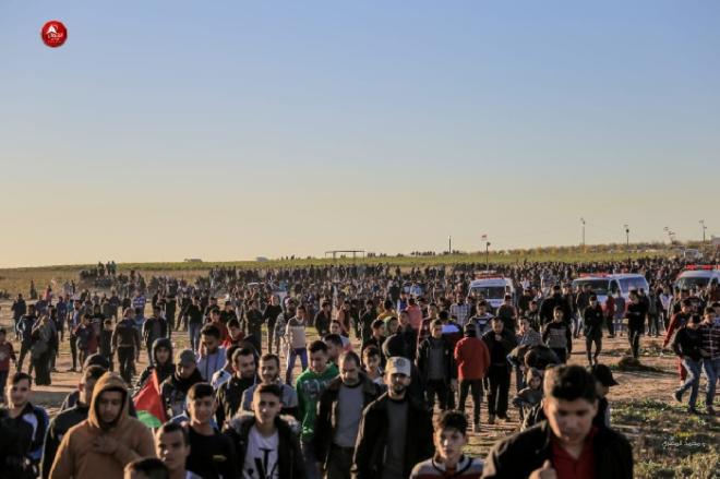 وكانت قد دعت الهيئة الوطنية العليا لمسيرات العودة في بيان لها، إلى مشاركة شعبية حاشدة في فعاليات اليوم بعنوان"المقاومة حق مشروع".