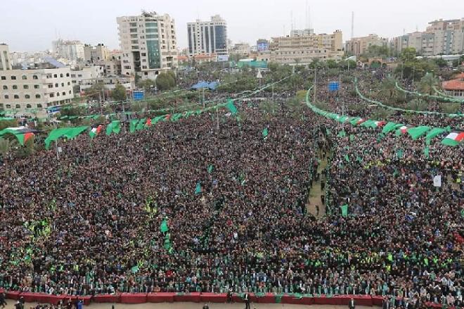 وأضاف: "نشارككم اليوم في هذا المهرجان الحاشد الذي تقيمونه في ذكرى انطلاقة حماس ال31 تجديدا لعهد الوفاء وتأكيدا على مواصلة نهج المقاوم".