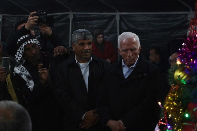 وأضاف: "اليوم قمنا بإضاءة شجرة الميلاد في الخان الأحمر، وغدا سنوقد شعلة انطلاقة الثورة الفلسطينية في الخان الأحمر أيضا."