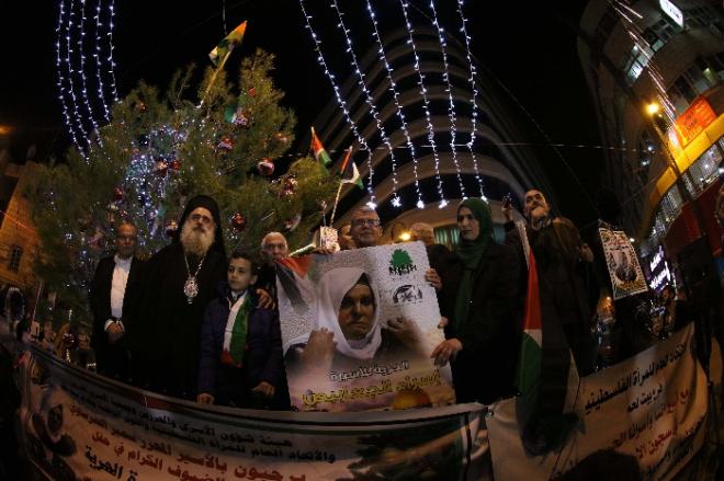 وقال محافظ بيت لحم كامل حميد، "إن اضاءة شجرة الميلاد والحرية، تعبر عن اننا متمسكون بالأمل والحرية والمستقبل، إضافة الى اننا نرسل رسالة للعالم نقول فيها هنا ولد المسيح والمحبة، وستبقى هذه الرسالة قائمة ولن تتوقف حتى بعد دحر المحتل".